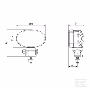 Työvalo LED, 20W, 3000lm, soikea, valkoinen, 100x54x93mm