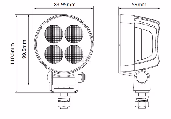 12/24V, valkoinen, 83,9 x 99,5 x 59 mm Deutsch-pistoke, Flood, 4 LEDiä