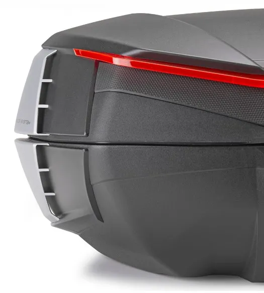 Monokey V49 Air -takalaukku tarjoaa runsaasti tilaa ja tyylikkään muotoilun, joka yhdistää mukavuuden, näkyvyyden ja toiminnallisuuden yhteen tuotteeseen. Sen 49 litran tilavuus on riittävä kypärien ja henkilökohtaisten tavaroiden säilyttämiseen. Mustan takalaukun näkyvyyttä parantavat kirkkaanpunaiset heijastimet, jotka lisäävät turvallisuutta liikenteessä. Lisäksi laukun kansi on maalattavissa, mikä mahdollistaa yksilöllisen ilmeen.