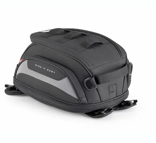 Laukku voidaan kiinnittää metallisäiliöllisiin moottoripyöriin neljällä integroidulla magneetilla tai vaihtoehtoisesti mukana toimitetuilla hihnoilla; molemmat ratkaisut takaavat parhaan mahdollisen vakauden ajon aikana ja yhteensopivuuden useimpien markkinoilla olevien moottoripyörien kanssa.