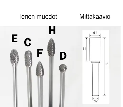Pitkä vingunterä 6 mm, muoto F