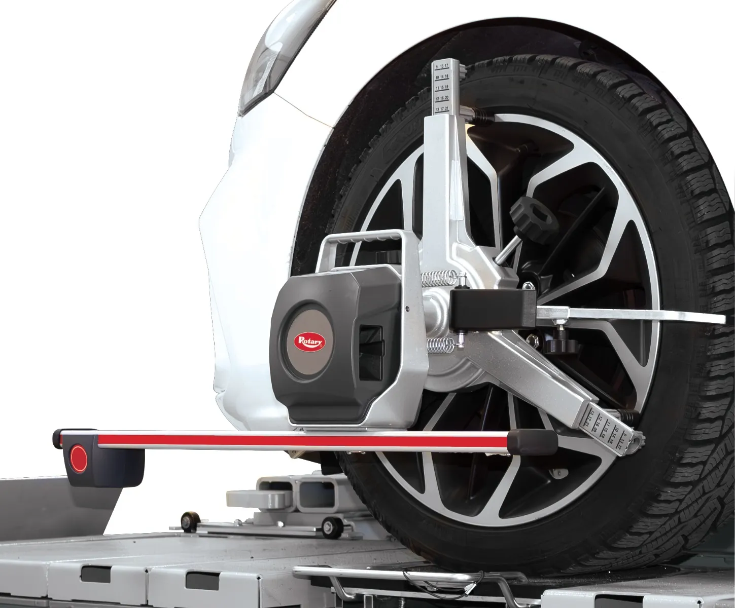 Rotary CCD tablettiohjattu pyöränsuuntauslaite Wifi yhteydellä. Tilaa säästävä rakenne; ei kiinteää kameratolppaa eikä tietokonevaunua. 3-piste rengaskiinnittimillä.