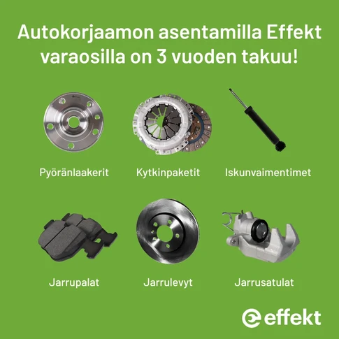 Effekt-tuoteperhe kattaa jo nyt kattavan valikoiman keskeisiä auton varaosia. Valikoimasta löytyy muun muassa: